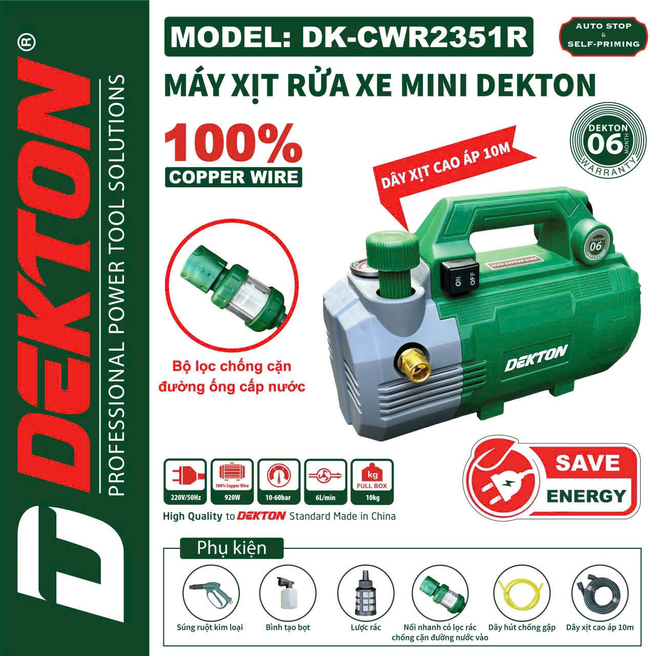 Máy rửa xe DEKTON DK-CWR2350C (có chỉnh áp) làm việc với công suất 2350W, áp lực tối đa 180 bar, phù hợp với nhu cầu sử dụng trong gia đình.