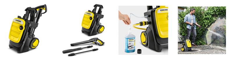 Máy phun rửa áp lực cao Karcher K5 Compact EU 2.100W giúp làm sạch xe và vệ sinh máy móc, nhà bếp, nhà vệ sinh, tường nhà… nhanh chóng mà lại tiết kiệm nước.