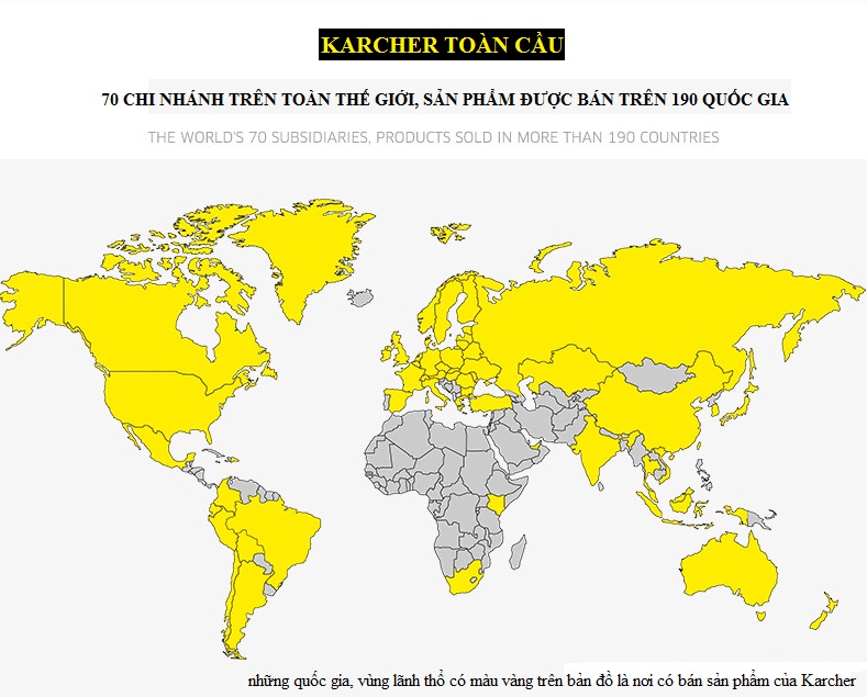Karcher – thương hiệu đến từ CHLB Đức – là đơn vị dẫn đầu thế giới trong việc cung cấp các sản phẩm và giải pháp trong lĩnh vực công nghệ làm sạch. Được thành lập vào năm 1935, trải qua 80 năm từ một doanh nghiệp gia đình, Karcher nay đã trở thành một thương hiệu dẫn đầu thế giới với ba đặc tính ưu việt “Hiệu quả, cải tiến và chất lượng hàng đầu” và với triết lý kinh doanh “Xem khách hàng là trọng tâm”.